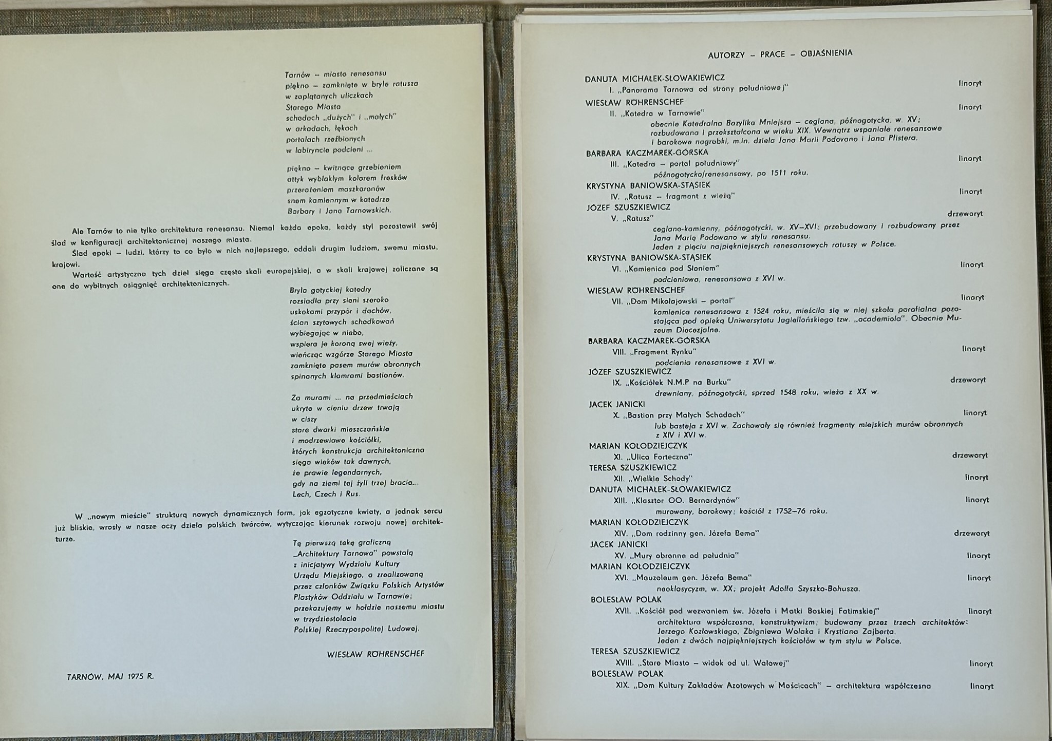 Architektura Tarnowa. Teka graficzna, cz. 1, Wydział Kultury Urzędu Miejskiego w Tarnowie, Tarnów 1975, XI, XIV, XVI.