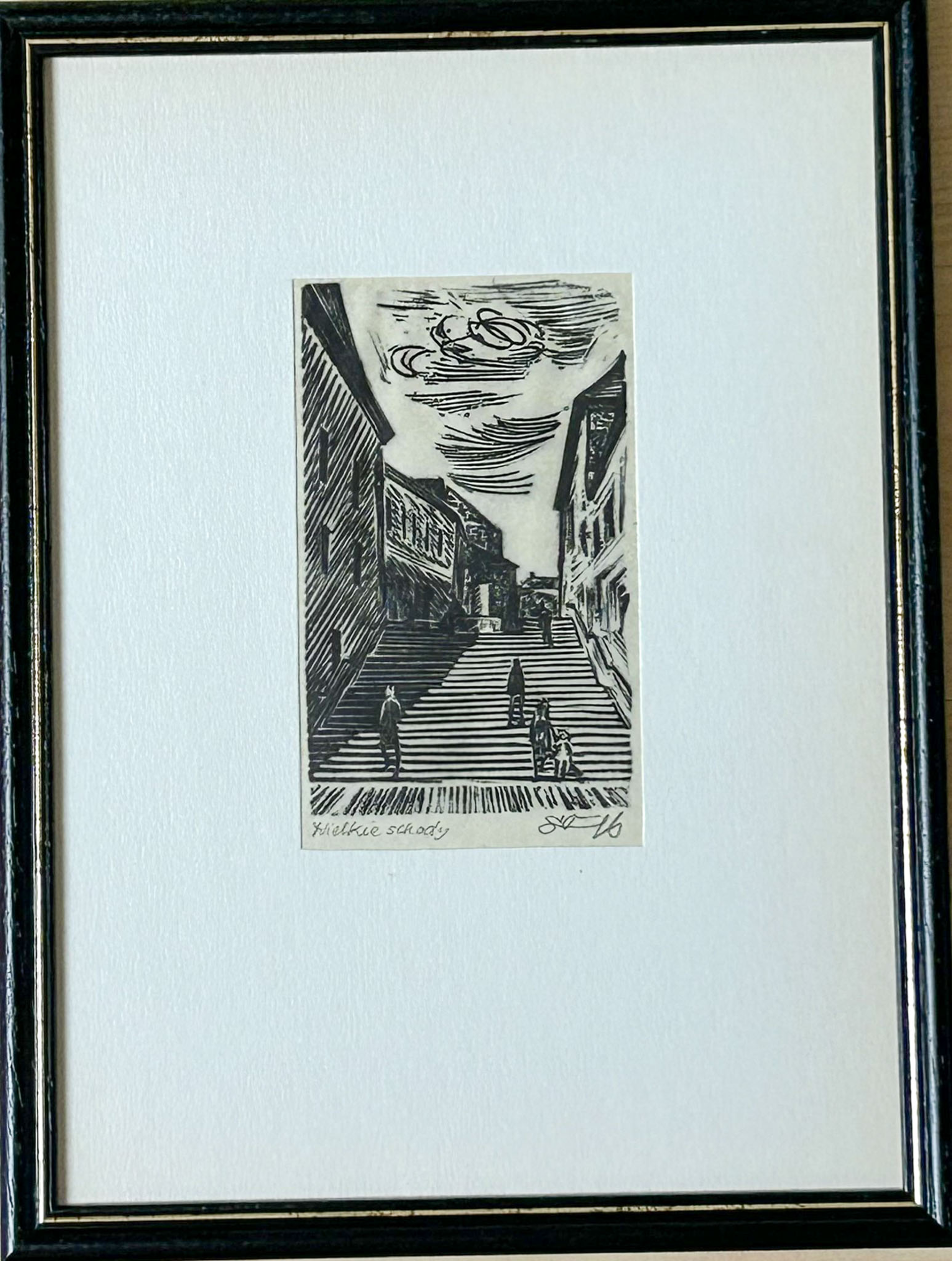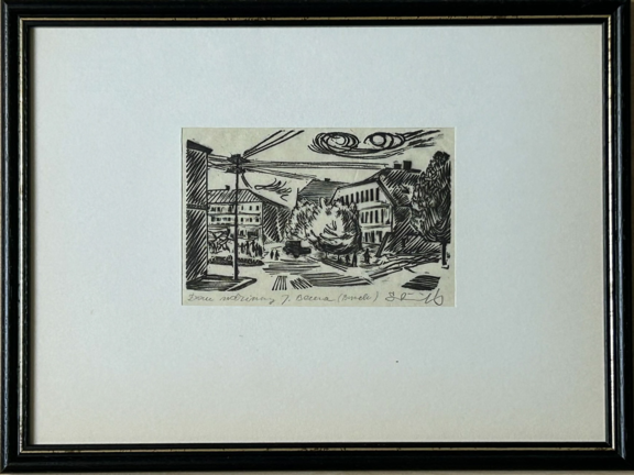 Teka o wym.: 31,5 x 24 cm, zawiera: 2 karty tekstowe oraz 10 ( z 12-tu) drzeworytów na bibułkach: wym. ca 16 x 11 cm. Każdy z nich w passepartout, sygnow. ołówkiem.